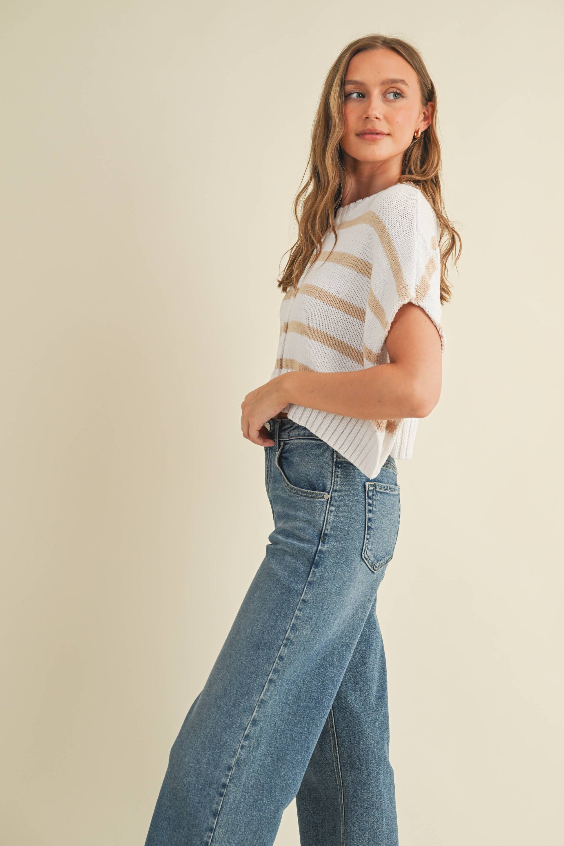 STRIPED KNIT CROPPED SWEATER VEST